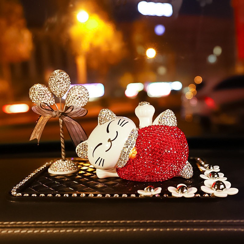 Đồ trang trí xe oto Mèo may mắn vẫy tay kết hợp chùm bóng dễ thương