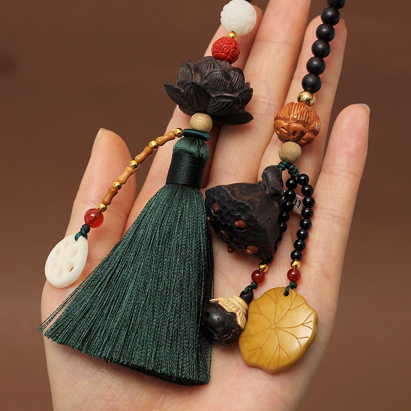 Chất liệu: gỗ mun, đá mã nào đen, gỗ gụ, rễ bồ đề