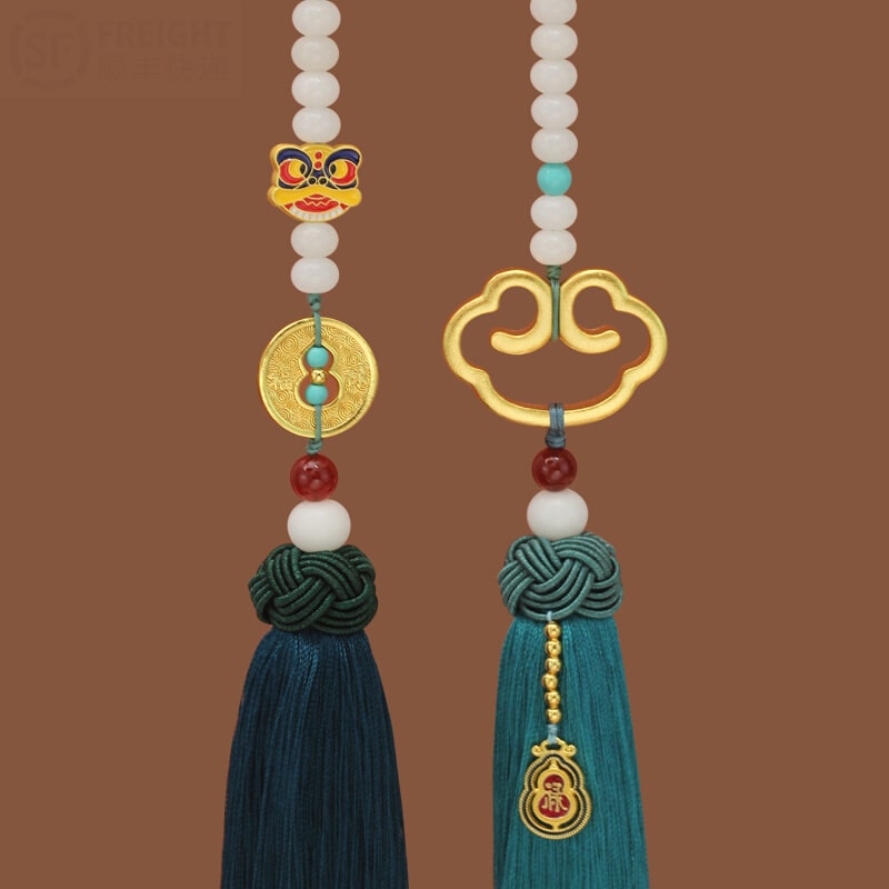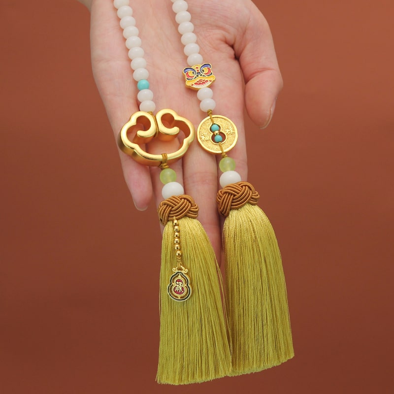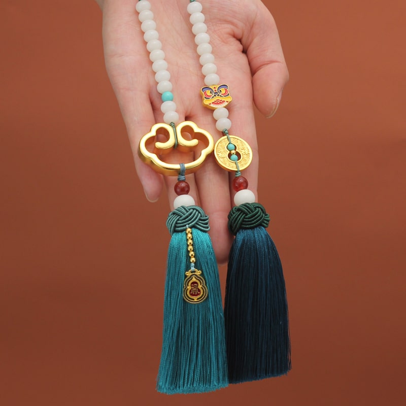 Dây treo xe ô tô chữ “PHÚC” kết hợp ngọc liên hoa trang trí xe hơi