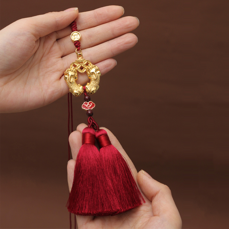 Dây treo xe ô tô chữ “PHÚC” kết hợp ngọc liên hoa trang trí xe hơi