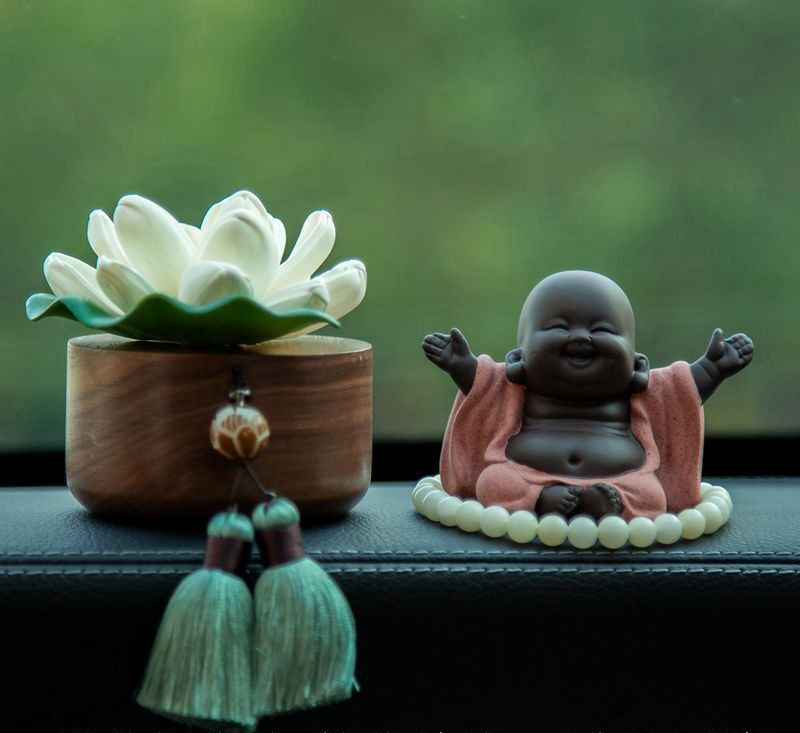 Mẫu tượng nhà sư bên đài sen để taplp xe hơi đẹp mắt